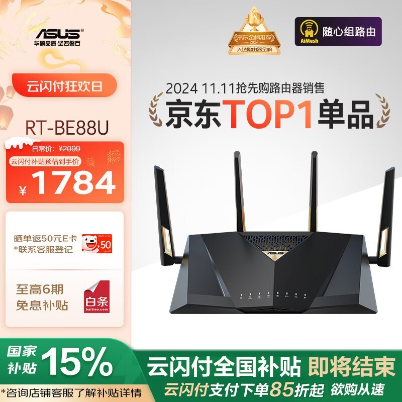 华硕RT - BE88U路由器京东热销,到手价2059元