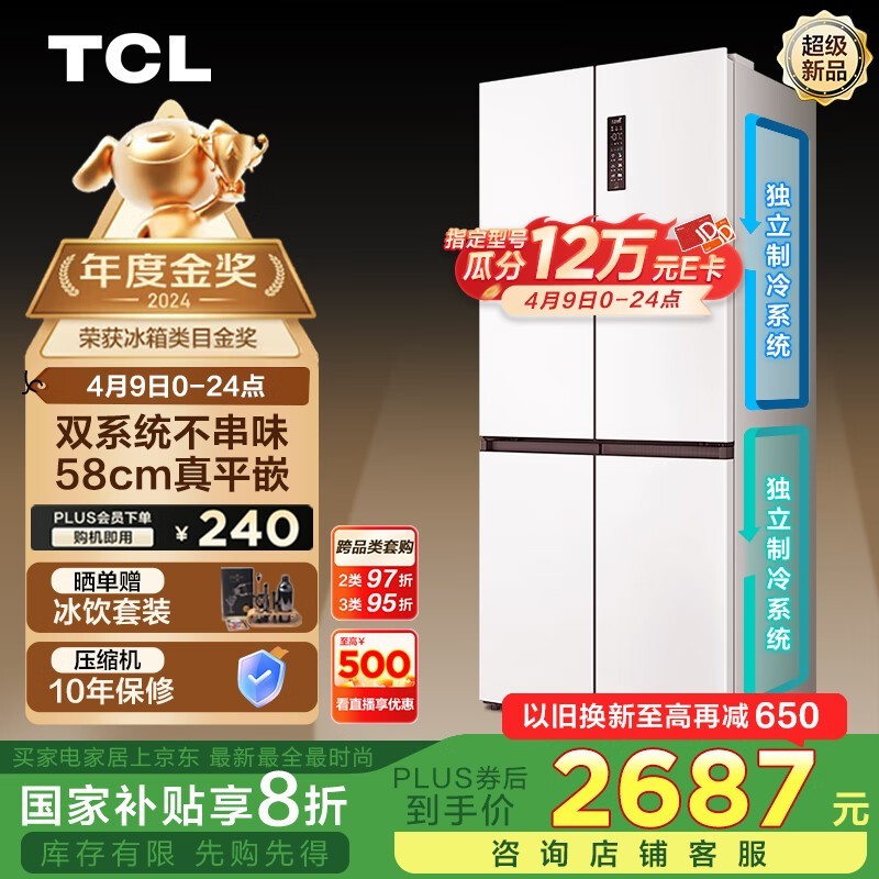 TCL对开门冰箱 T9 Pro系列 R451T9-UQS 451L京东特惠价2355元