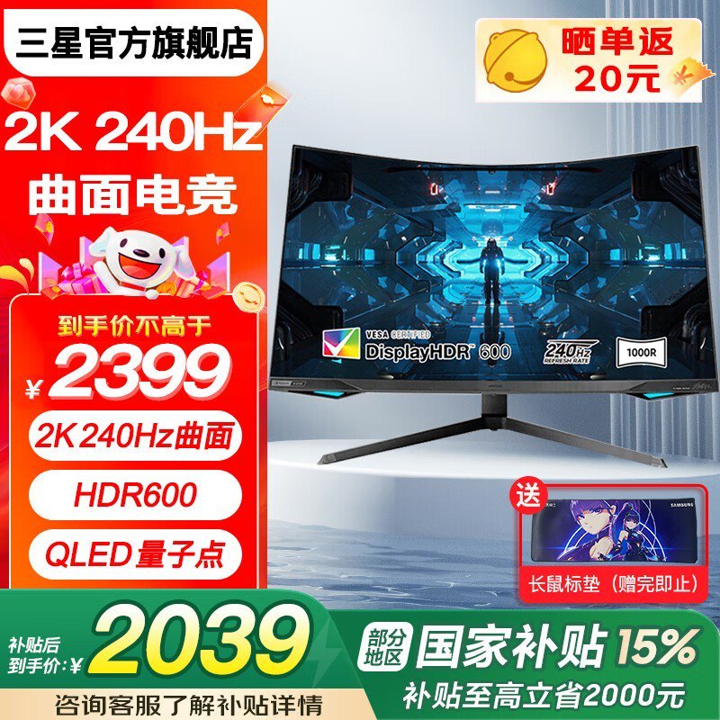 三星SAMSUNG玄龙骑士G7电竞显示器27英寸2K高清仅2039元