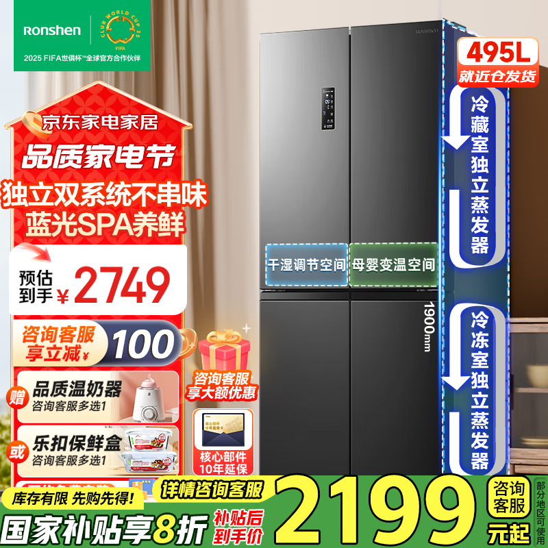 容声495升四开门冰箱促销到手价1989元