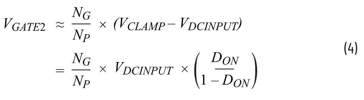 栅极2的电压与匝数比以及VCLAMP和 VDCINPUT之间的差距有关。
