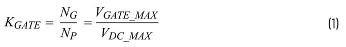 KGATE为变压器比率。NG为变压器绕组的匝数。NP为变压器初级绕组的匝数。VGATE_MAX为MOSFET栅极驱动电压的最大电压。VDC_MAX 为直流输入电压的最大电压。
