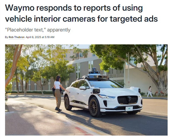 The Verge最新报道指出,这名发言人后续否认了Waymo使用无人驾驶出租车内的摄像头录像来训练生成式AI模型以进行定向广告。