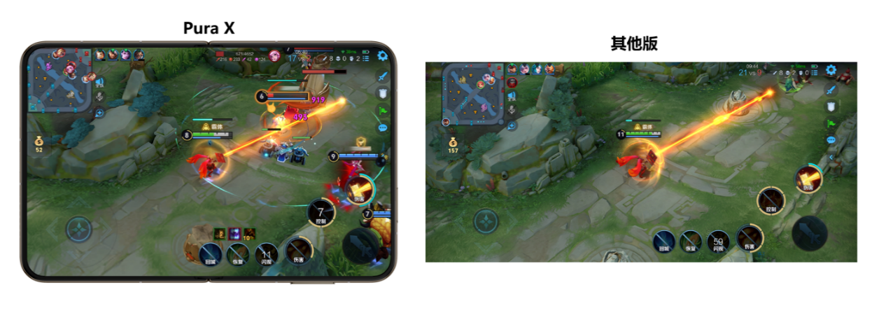 基于鸿蒙系统的特性与Pura X的创新形态,鸿蒙版王者荣耀在Pura X上为玩家带来阔感游戏体验。目前,腾讯旗下的王者荣耀、和平精英等热门游戏均已深度适配搭载鸿蒙操作系统5的Pura X,带来大有不同的“阔感”游戏体验。