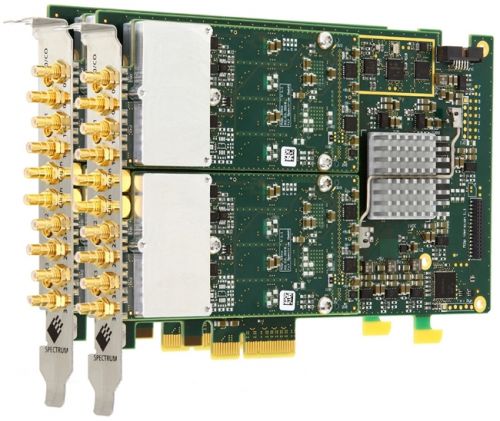 两块M2p.5913 数字采集卡提供16 个采集通道,仅占用两条 PCIe 插槽。Spectrum仪器的 M2p.59xx 系列产品能够提供 24 款不同型号,采样速率从 5 MS/s 至 125 MS/s,每张卡支持 1 至 8 个通道,均为16 位分辨率,适用于不同的研究需求。