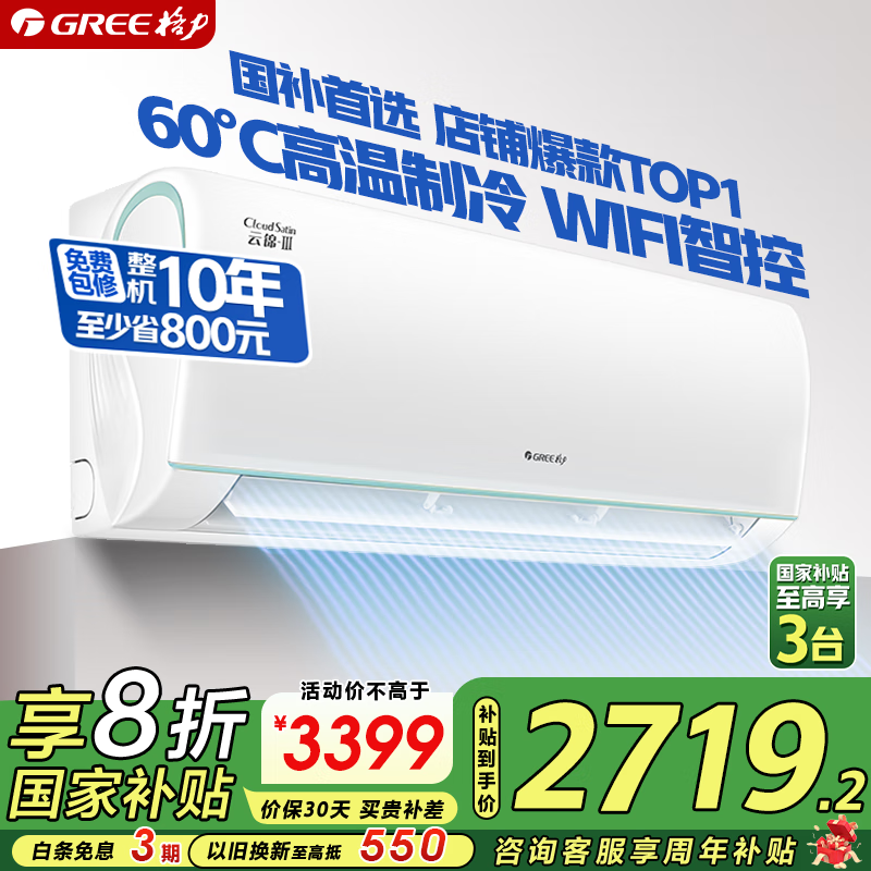 格力云锦三代新一级能效1.5匹壁挂式空调促销信息