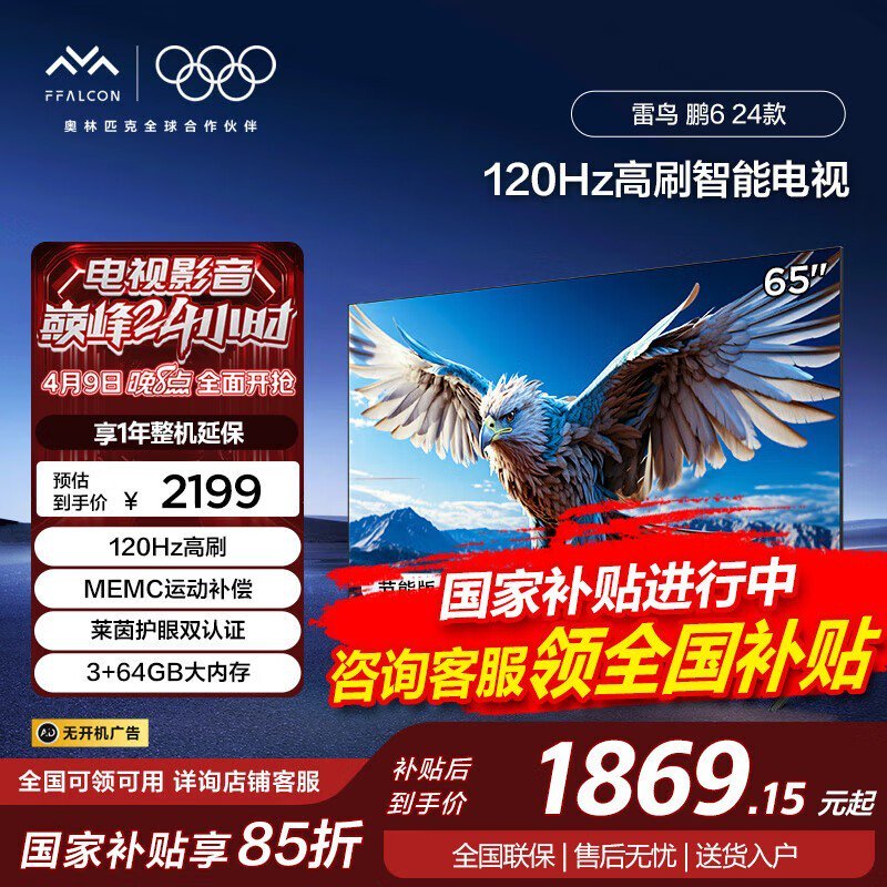雷鸟鹏6 65英寸电视促销 到手价1741元
