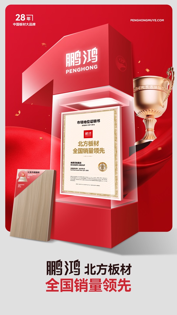 近日,鹏鸿凭借卓越的市场表现,荣获“北方板材全国销量领先”称号,再次印证了行业领军者的地位。