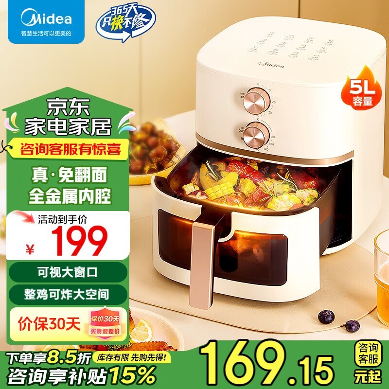 美的5L空气炸锅家庭适用,京东优惠低至142元