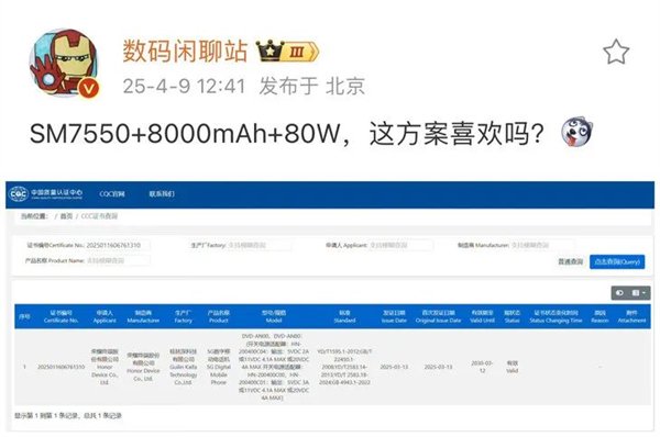 除了大电池,荣耀Power还将支持80W快充,进一步提升了充电效率。