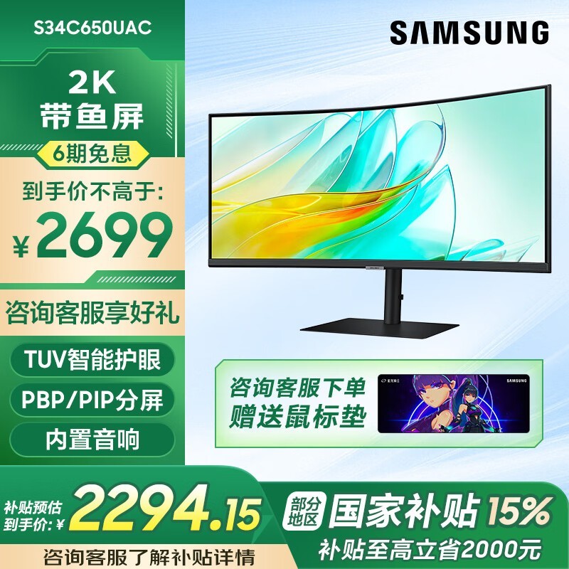 三星S34C650UAC曲面屏办公显示器超值优惠