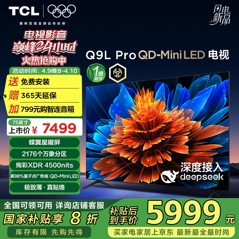 TCL Q9L 75英寸电视,多种优惠后5855元