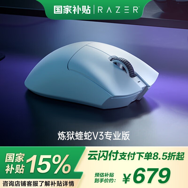 雷蛇炼狱蝰蛇V3专业版无线鼠标白色款近期好价到手611元