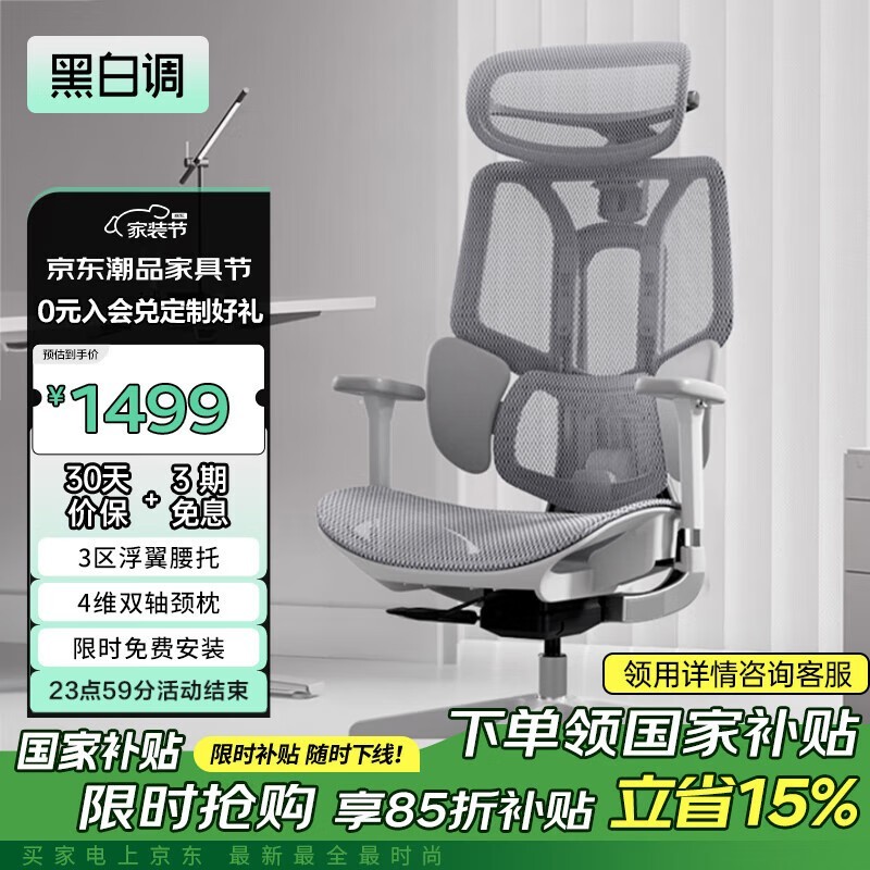 黑白调E3结构大师人体工学椅京东促销1499元