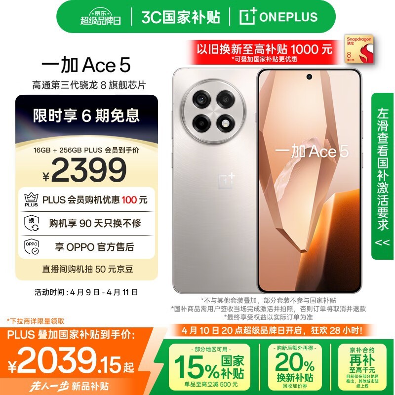 一加Ace5手机16+256GB引力钛5G性能京东2039元