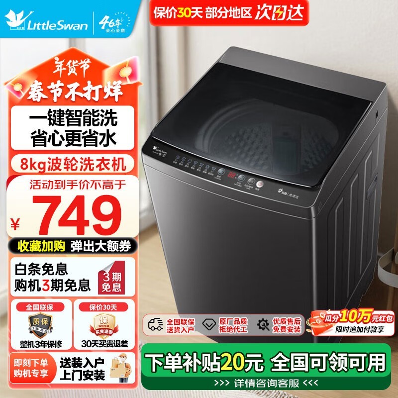 小天鹅8kg全自动波轮洗衣机TB80V26T京东促销