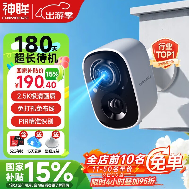 神眸Cinmoore门口楼道摄像头高清无线免插电仅147元