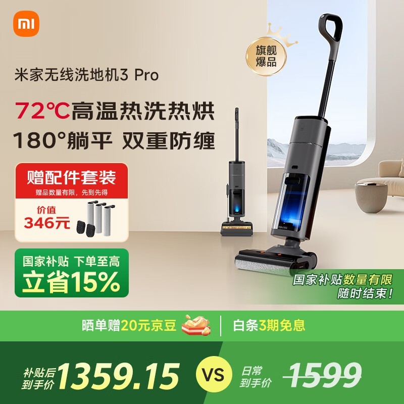 小米无线洗地机3Pro京东活动价低至1293元