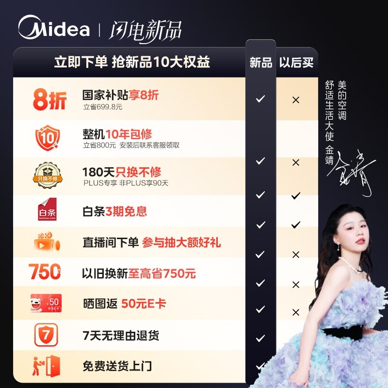 美的无风感pro空调大1匹到手价2736元