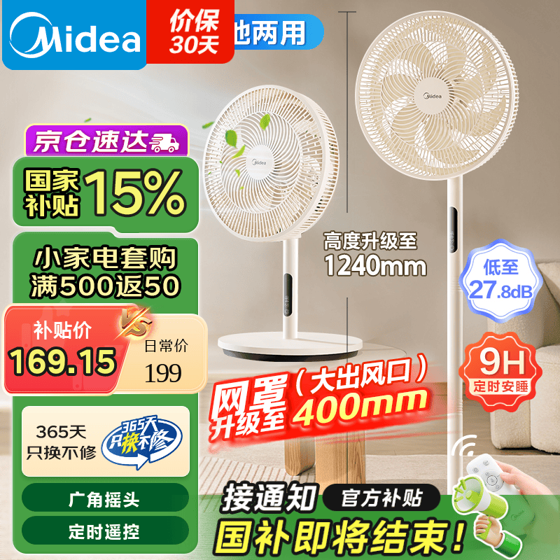 美的七叶电风扇SAH35MKL遥控智能落地扇好价促销