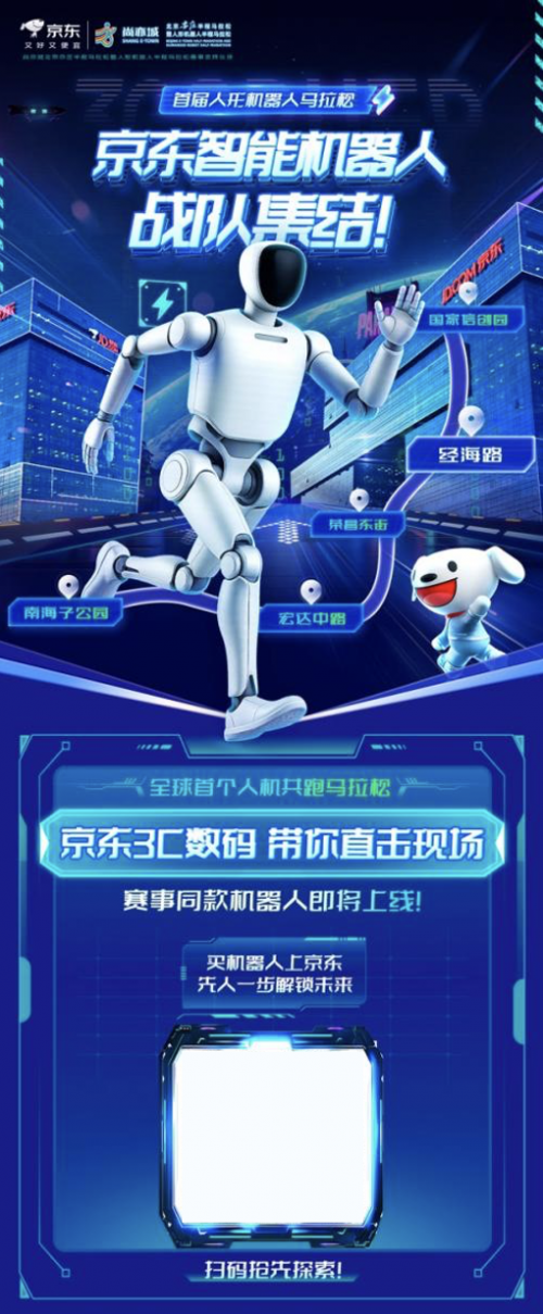 图注:“具身智能机器人”,是能像人一样感知世界,能自动学习、思考并执行任务的机器人作为“北京亦庄半程马拉松暨人形机器人半程马拉松赛事”官方支持伙伴,此次京东联合多家参赛机器人品牌,希望通过这前所未有的智能机器人马拉松赛事,让消费者能够直观地感受到人形机器人在比赛中展现出的强大能力,深度感受当前具身智能机器人技术的发展程度。这场比赛不仅验证了智能机器人现有技术的成熟度,也将进一步推动技术创新和应用场景的拓展,同时让消费者提前感受到未来生活中机器人带来的便利与乐趣,为机器人技术的推广和应用奠定了坚实基础。