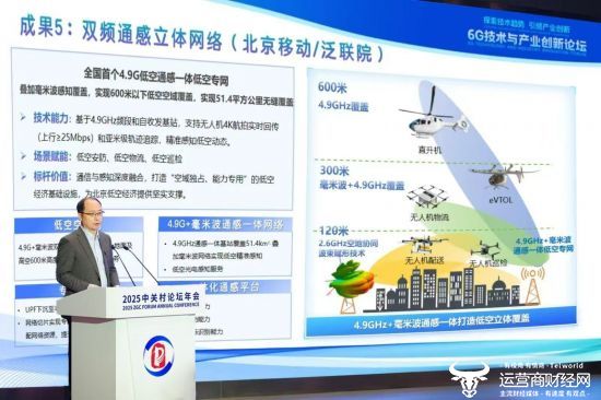 在近日举办的“2025中关村论坛年会6G技术与产业创新论坛”上,中国移动北京公司(北京移动)与中关村泛联移动通信技术创新应用研究院联合发布了创新成果——全国首个"双频通感立体网络"。这是通信感知一体化(通感一体)这一6G关键核心技术从理论走向规模化组网的重要里程碑,是6G标准化与商用化进程中的关键一步。