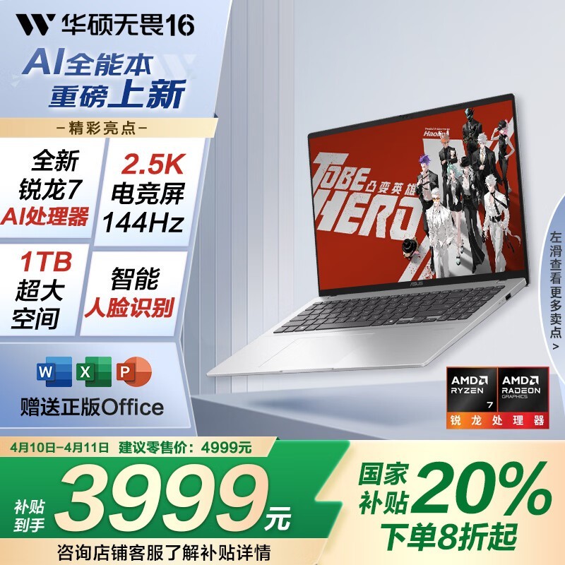 华硕无畏16 2025锐龙版京东下单享国补价