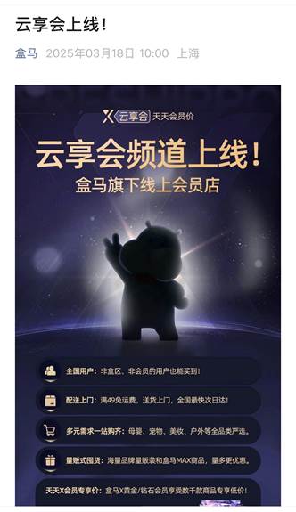 “云享会”是盒马云超与盒马X会员店的集合版和升级版。