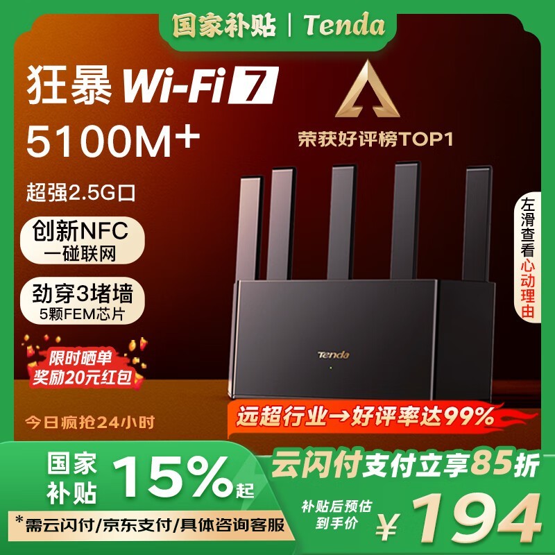 腾达BE5100 BE6L Pro WiFi7路由器千兆Mesh家用
