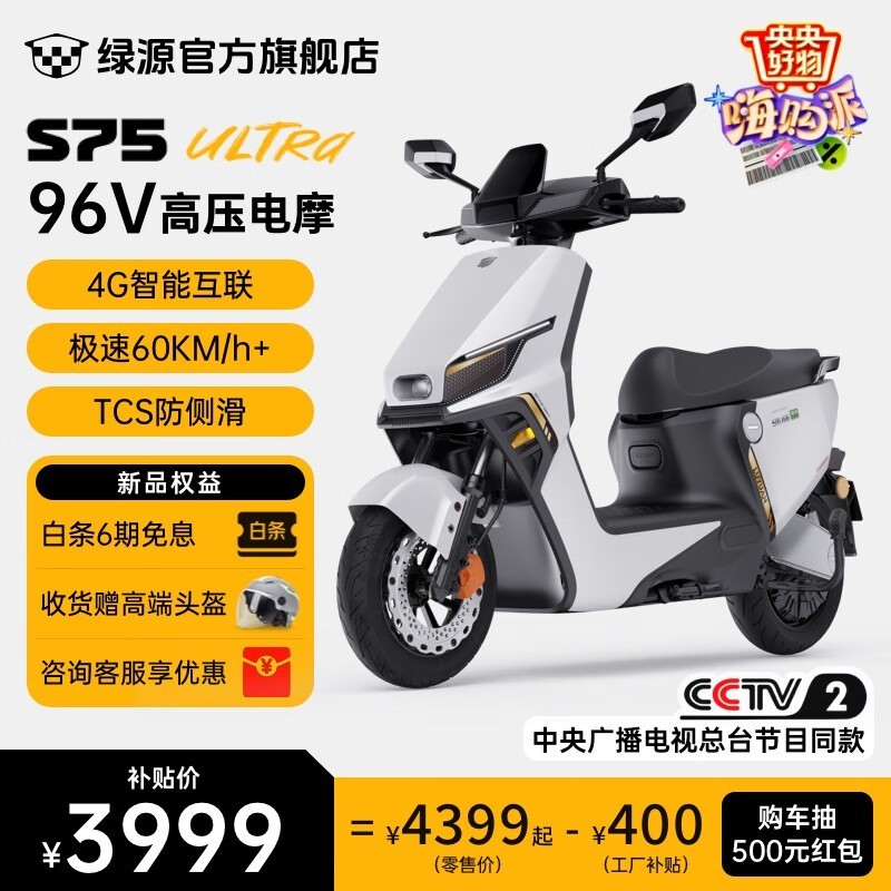 绿源S75Ultra电摩京东优惠,到手3999元