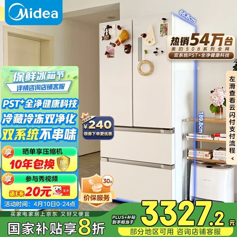 美的508升法式多门冰箱BCD-508WTPZM(E)促销到手2893元