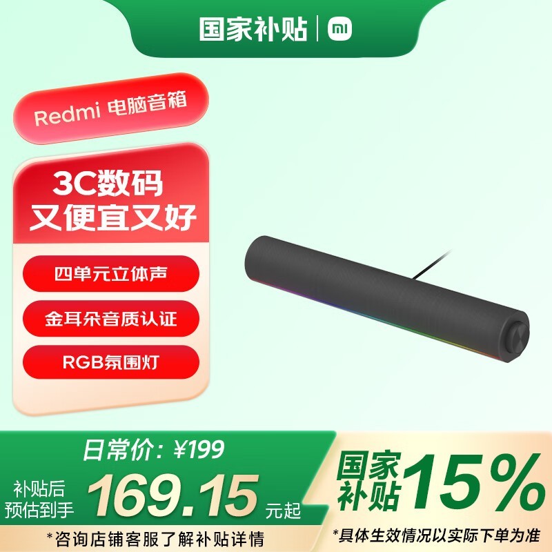 小米Xiaomi ASB02A电脑音箱深灰色仅需159元