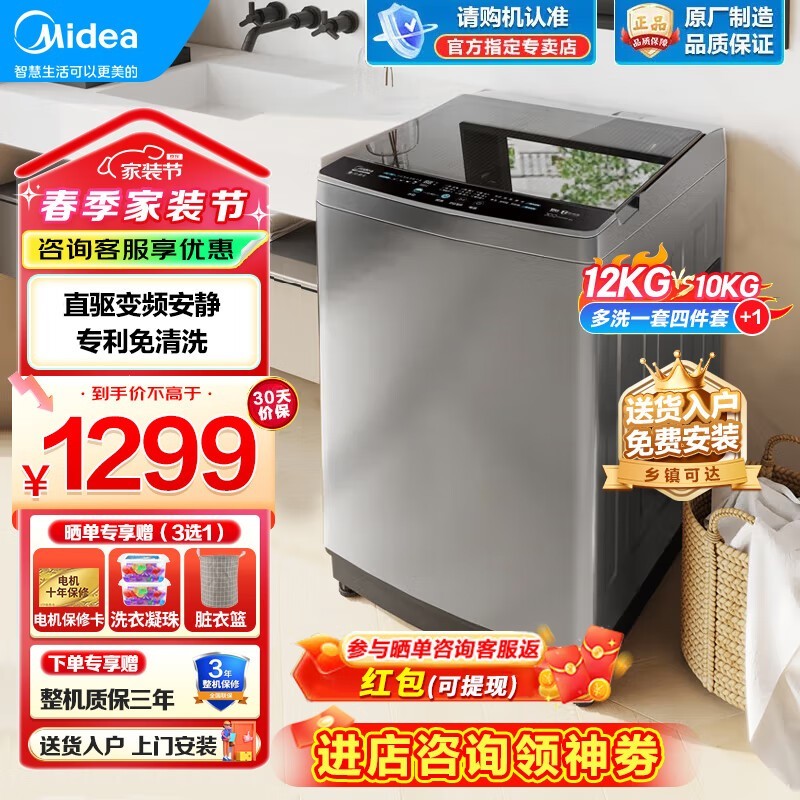 美的全自动波轮洗衣机12公斤大容量京东促销到手价951元