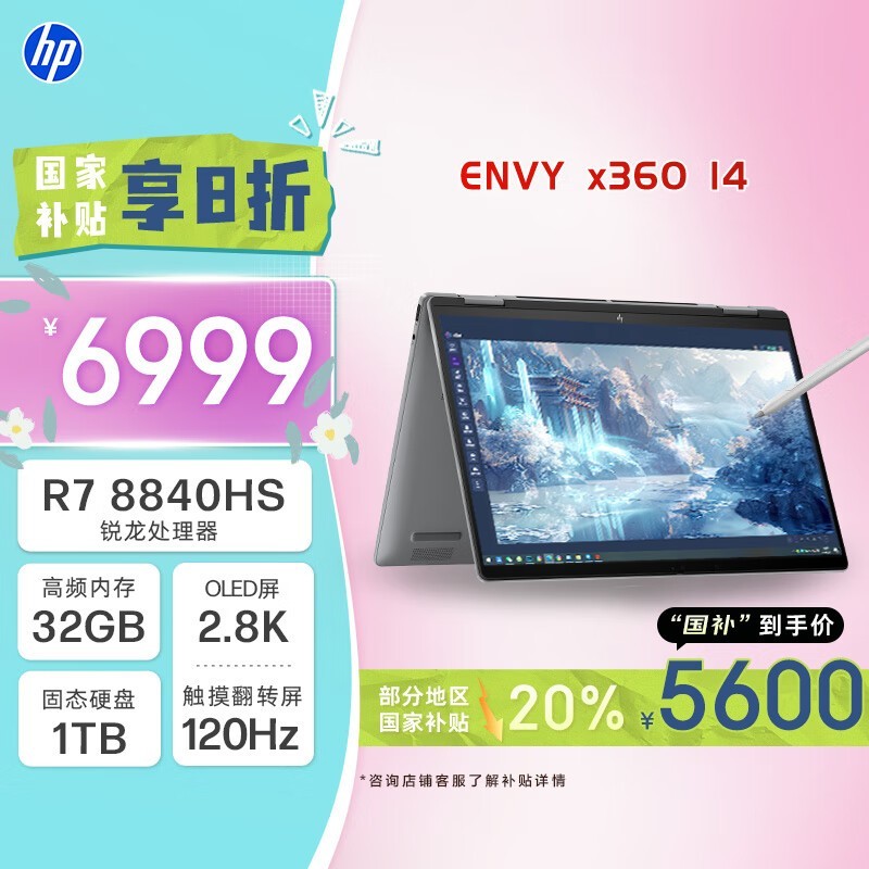 惠普ENVY x360 14锐龙版笔记本京东国补价5600元