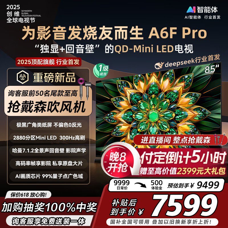 创维85A6F Pro电视预售,优惠后7407元
