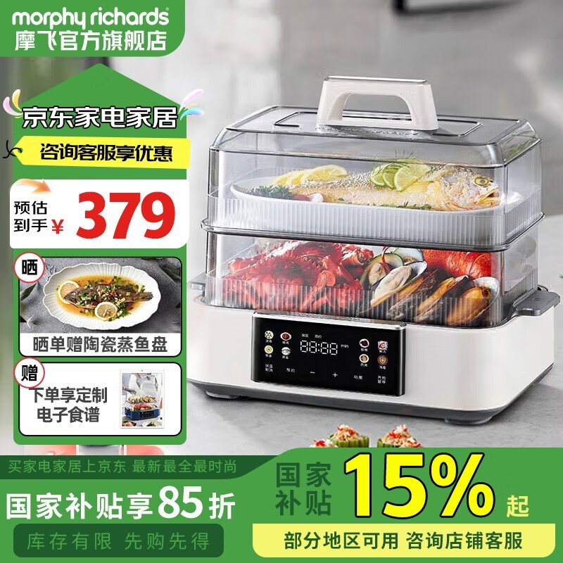 摩飞MR1158电蒸锅12升椰奶白多功能蒸煮炖京东活动价288元