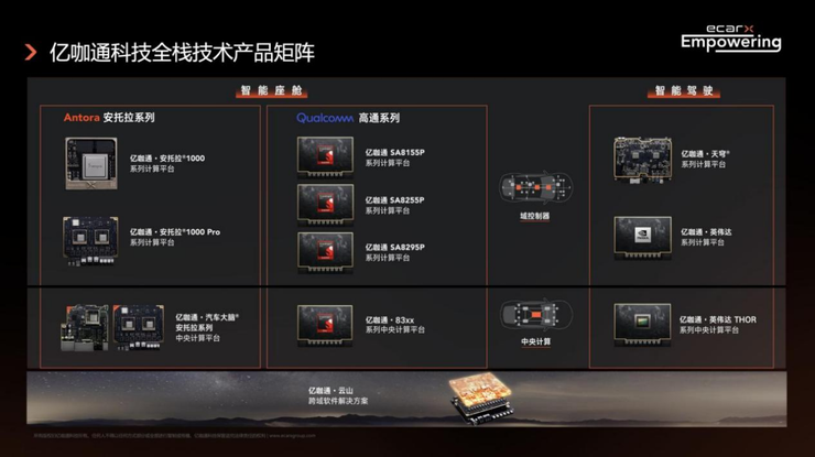 出色的业绩表现是亿咖通多年努力的结果,尤其是技术方案的领先能力,更是核心支撑。以亿咖通旗下安托拉系列计算平台为例,亿咖通从成立初期,就结合汽车智能化的实际需求,开始从底层硬件开始布局研发,基于龍鹰一号的前瞻架构设计,包括集成的 8TOPS AI 算力,同步开发安托拉计算平台,以及配套的云山跨域软件平台,力图构建软硬结合的完整车规级智能化解决方案。