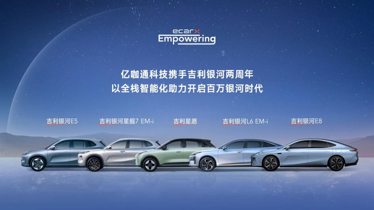 而规模化交付能力,要看吉利银河和亿咖通的合作,包括吉利银河E5、吉利银河星舰7EM-i、吉利星愿、吉利银河L6 EM-i、吉利银河E8、吉利银河星耀8在内的多款车型,在亿咖通科技的灵活赋能和规模化出货能力下,持续实现销量突破。此外,星舰7、E5、星愿都是细分市场爆款冠军,亿咖通的大规模交付能力和解决方案成熟度得到了充分验证。
