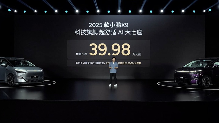 发布会的最后,小鹏公布了 2025 款 X9 的预售价格:39.98 万元,并表示新车将于下周正式上市。
