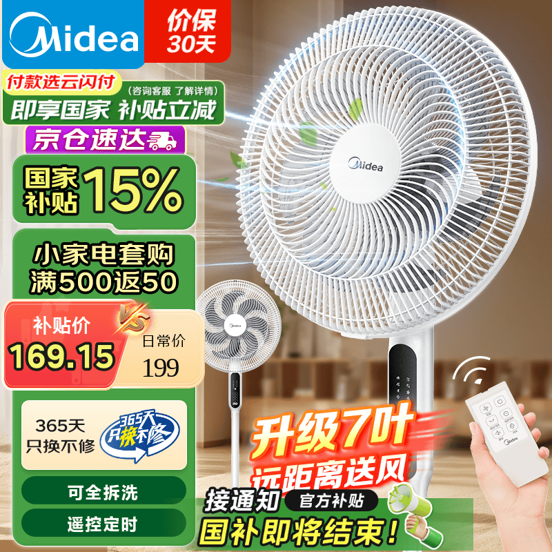 美的SAC35BR白色落地扇促销,低至152元