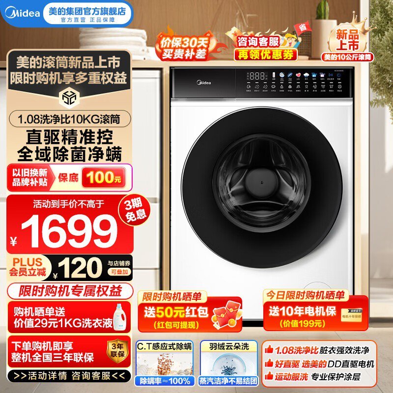 美的MG100V930DE 10kg滚筒洗衣机到手价1057元