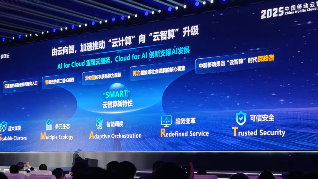 陈怀达认为,作为云智算时代的探路者,云智算服务将呈现五大特性,包括“超大规模、多元生态、智能调度、服务变革、可信安全”,简称“SMART”。