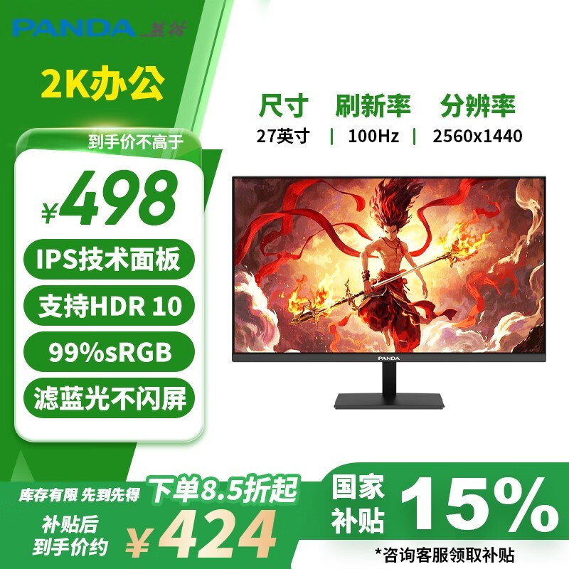 熊猫P27Q4显示器27英寸2K高清仅421元