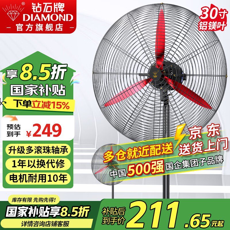钻石牌工业风扇京东促销,原价259现229