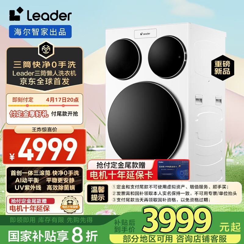 Leader XQGL125 - MBLDE697WU1滚筒洗衣机3999元可入手
