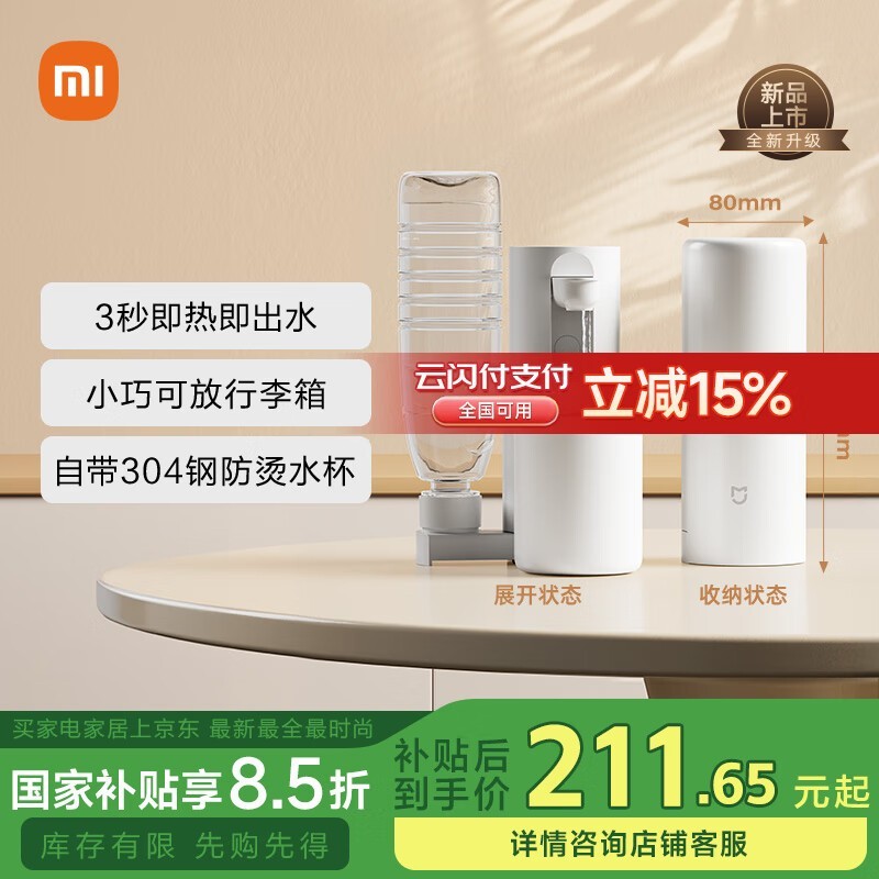 米家即热式饮水机优惠,到手价211元