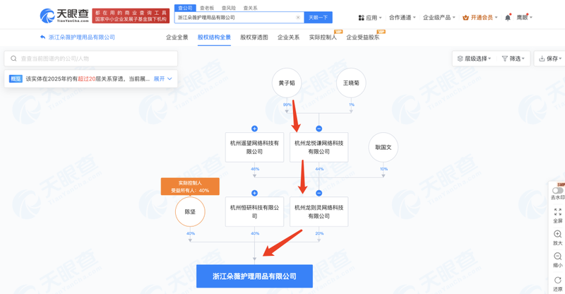 蓝鲸记者发现,黄子韬通过名下杭州龙悦谦网络科技有限公司间接持股浙江朵薇护理用品有限公司。