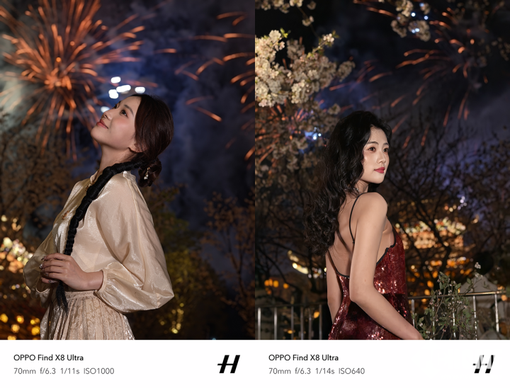 结合实拍样张来看,Find X8 Ultra的夜间人像样张表现不俗,70mm焦段之下,无论是暖色光还是冷色光,人物面部肤色均自然真实,并且细节解析力丰富,人物的发丝、衣服的纹理等细节均清晰可见。