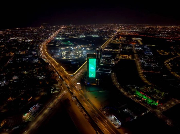 在沙特阿拉伯东部省最大城市“达曼”的繁华街头,AKH Tower(即 برج العبدالكريم 阿卜杜勒·卡里姆塔)静立城市中心。近日,这座地标建筑在洲明光显的点缀下,焕发出全新的生命力。——2806㎡ LED定制化视频级玻璃幕墙横亘建筑外立面,作为“达曼最大LED户外屏”,化身光影交织的艺术载体,传播城市文化与品牌价值、点亮达曼夜空。