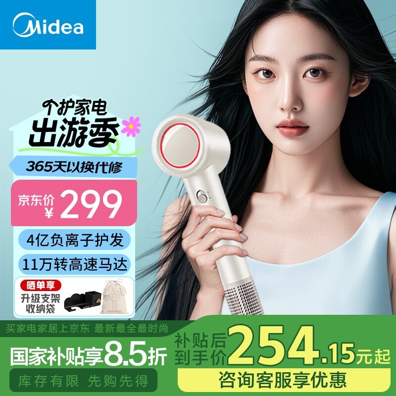 美的吹风机FG201恒温负离子养护秀发高效速干